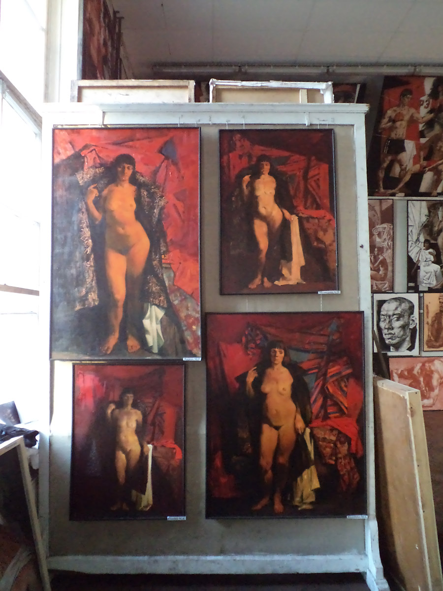 Свершилось! Я думала это никогда не кончится. Обход прошел. Ниже представлен некоторый фото материал с него. Правда было уже почти 10 вечера и солнышко нещадно лупило по картинам. Да и не совсем парадный вид имеет мастерская (утром перед обходом все это убрали и помыли). Но надеюсь это не испортит впечатление. Для тех кто в Питере будет с 21-23 мая спешу сообщить что все это безобразие (и другие мастерские) можно увидеть своими глазами. В эти дни двери института открыты и все желающие могут все посмотреть. время работы с 11:00 - 15-00. Адрес: Университетская наб. 17.